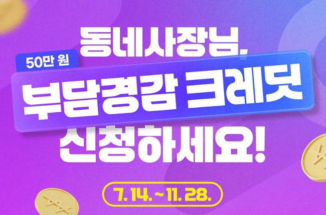부담경감 크레딧은 중소벤처기업부와 소상공인시장진흥공단이 주관하는 정책으로, 에너지비용 및 사회보험료 등의 고정비용을 낮춰주기 위한 디지털 바우처 형태의 지원금입니다. 이를 통해 소상공인의 고정지출 부담을 덜고, 실질적인 현금 유동성을 확보할 수 있도록 돕고자 합니다.